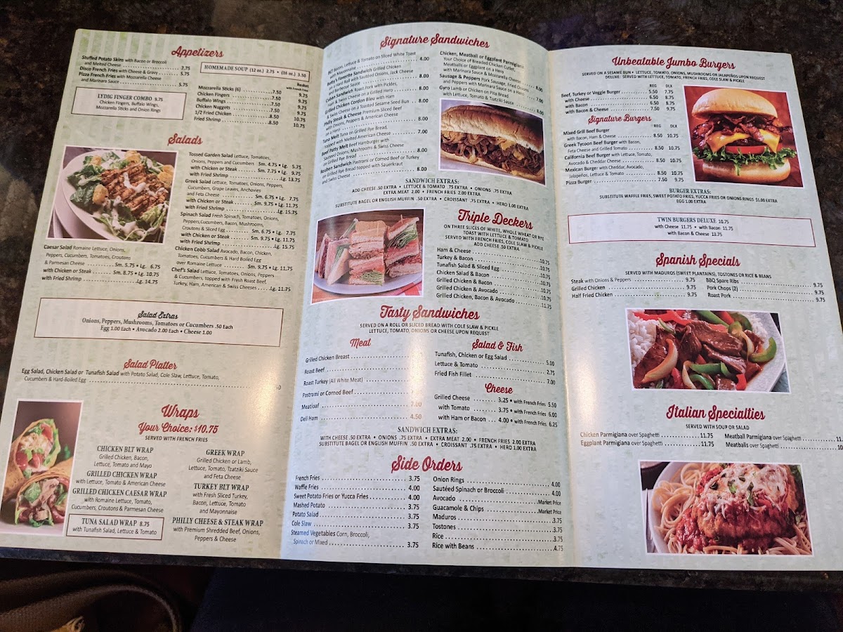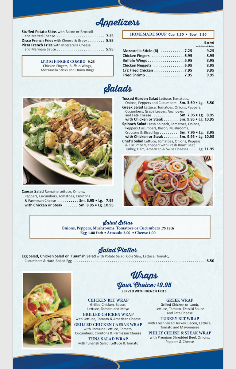 With grilled chicken or lamb, lettuce, tomato, tzatziki sauce and feta cheese. Served with French fries.